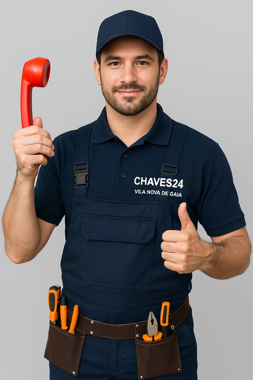 Ficou trancado fora de casa ou a fechadura avariou em Vila Nova de Gaia? A CHAVES24 garante um serviço rápido e profissional de abertura de portas 24h, troca e reparação de fechaduras e instalação de fechaduras inteligentes. Assistência imediata em todas as freguesias — Mafamude, Canidelo, Oliveira do Douro, Santa Marinha, Afurada, Vilar de Andorinho e muito mais.